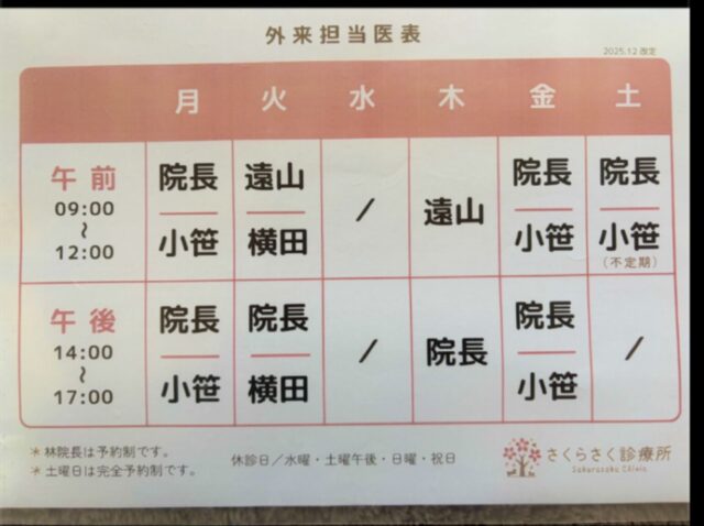 木曜日の午前中の診療体制は、遠山先生のみの診療体制となります。