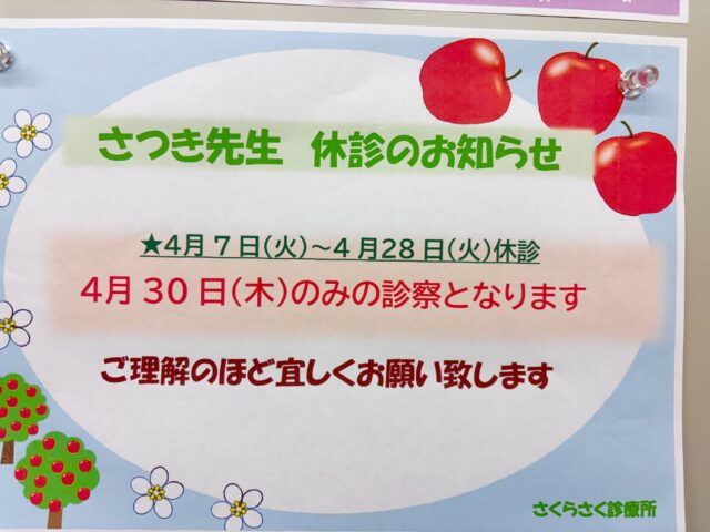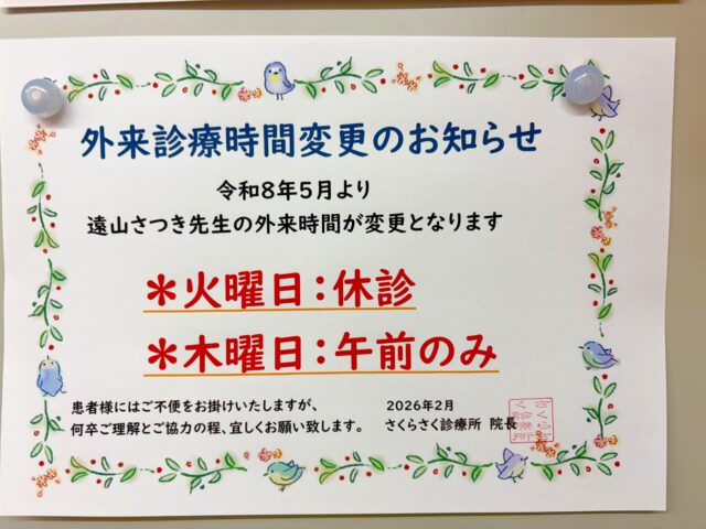 NEW!!!【2026年度 さつき先生の外来につきまして🌸】